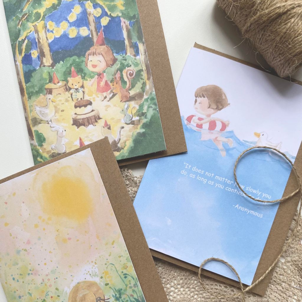 Currently selling greeting cards, art prints, stationarys and original artworks.